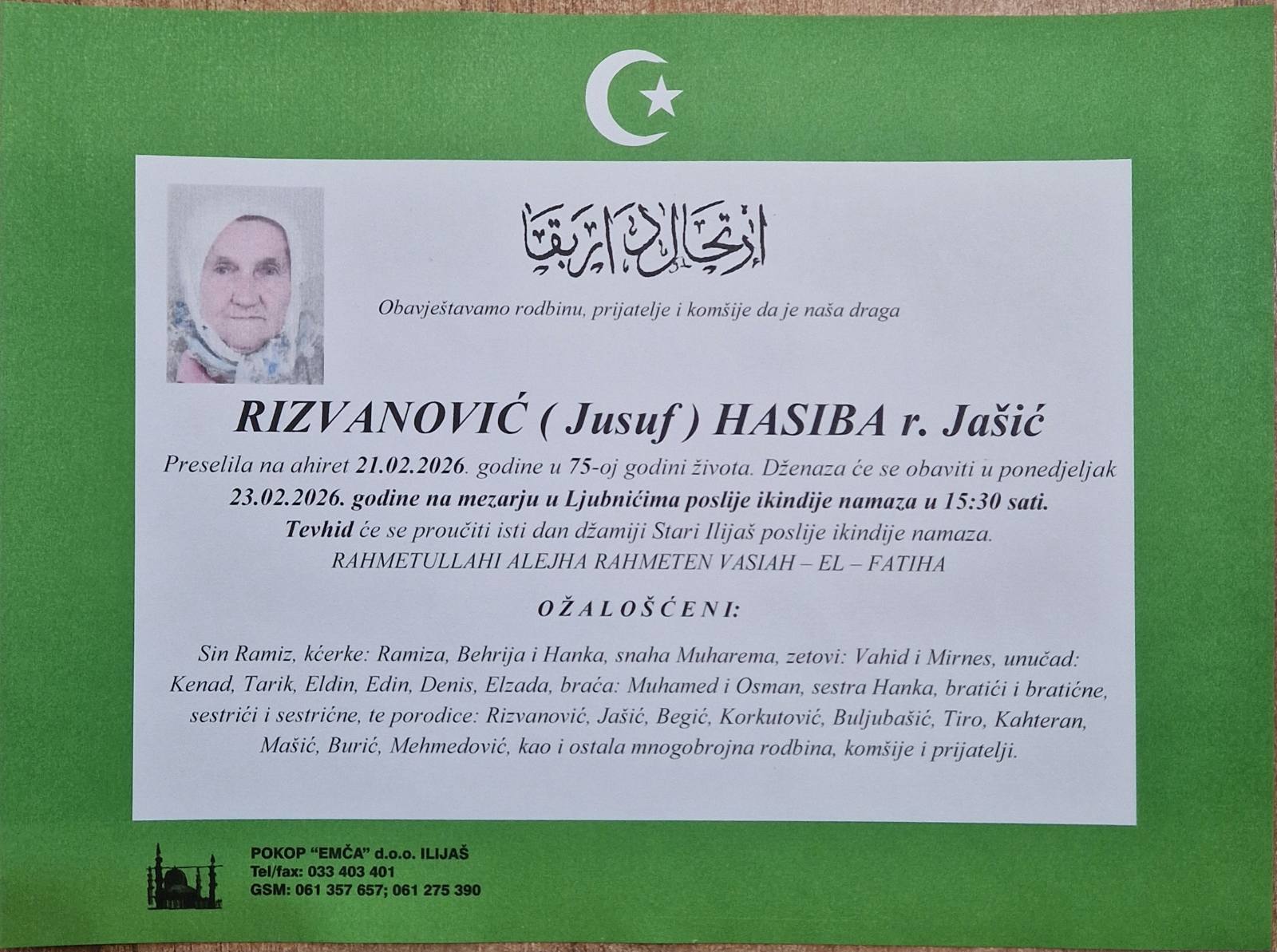 Rizvanović (Jusuf) Hasiba r. Jašić